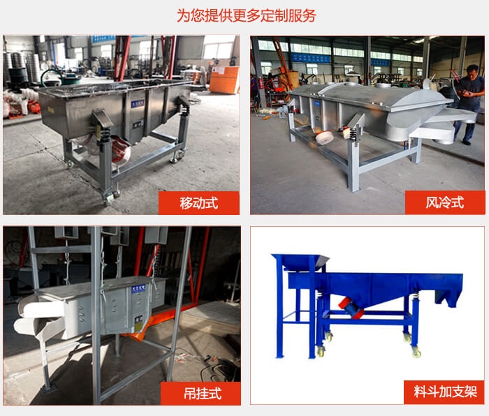 直線篩選機(jī)可根據(jù)要求采用不同的設(shè)計(jì),如篩機(jī)的總高度、進(jìn)料口角度/尺寸、出料口角度/尺寸/加閥、設(shè)備表面處理可選擇拋光或噴砂、普通電機(jī)/防爆電機(jī)等。不同設(shè)計(jì),價(jià)格不同。