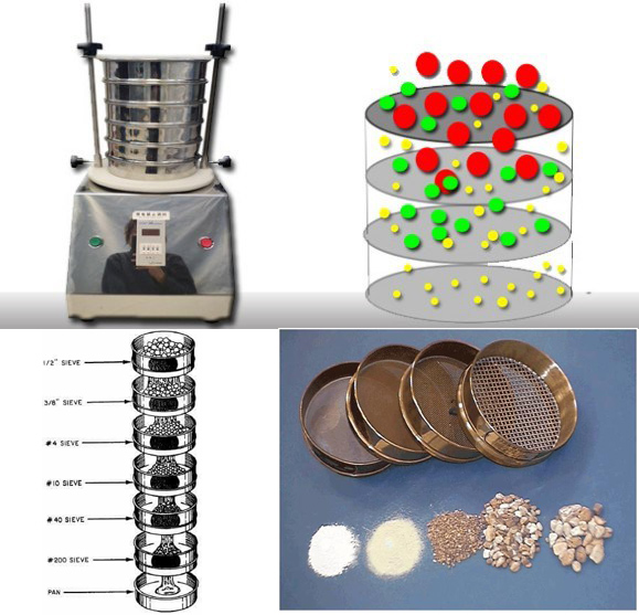 電磁試驗篩由底座、電磁發生器、篩盤及標準篩組成。采用電磁作為驅動力,使產品均一分布于整個篩網,并做三維振蕩(具有上下振動、前后往復運動、左右擺動三種振動方式),這種特殊的振蕩方式有效地防止近篩顆粒堵塞篩孔,使得篩下顆粒得以有效通過,根據粒度分級的需要用戶可以選用不同目數的標準篩,使小于篩網??的物料顆粒篩入下層篩框內,以達到分離、分級、確定粒徑的目的。