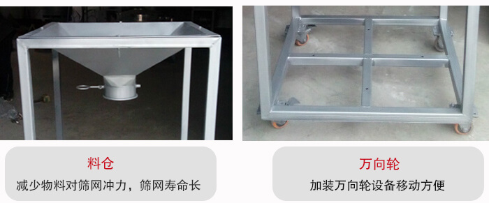 移動式料倉振動篩又叫振動篩料倉一體機底部加裝萬向輪,可360度旋轉(zhuǎn)移動。