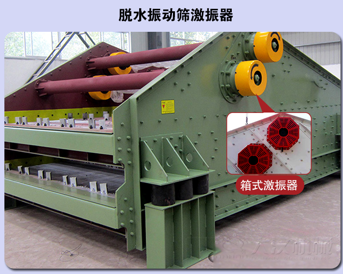 激振器采用整體的箱式激振器.激振器安裝在篩箱上部的大梁上,箱體內裝有主動軸和從動軸,軸上各有一對重量相同的偏心塊,通過齒輪兩根軸做同步反向回轉,使偏心塊回轉,產生離心力形成激振力。偏心塊成對的布置在激振器箱體外面,使箱內結構緊湊,齒輪對安裝在箱體內,潤滑可靠,傳動平穩。