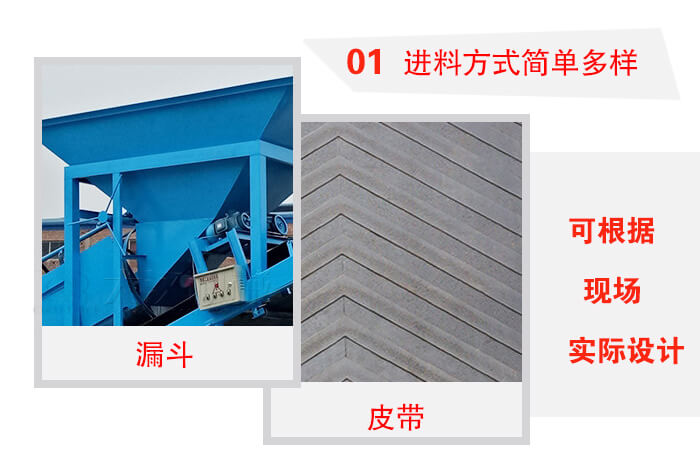 我公司研制的重型滾筒篩進料口可根據現場實際設計,無論是皮帶、漏斗或其它進料方式,不用采取特殊措施,都可以順暢進料。
