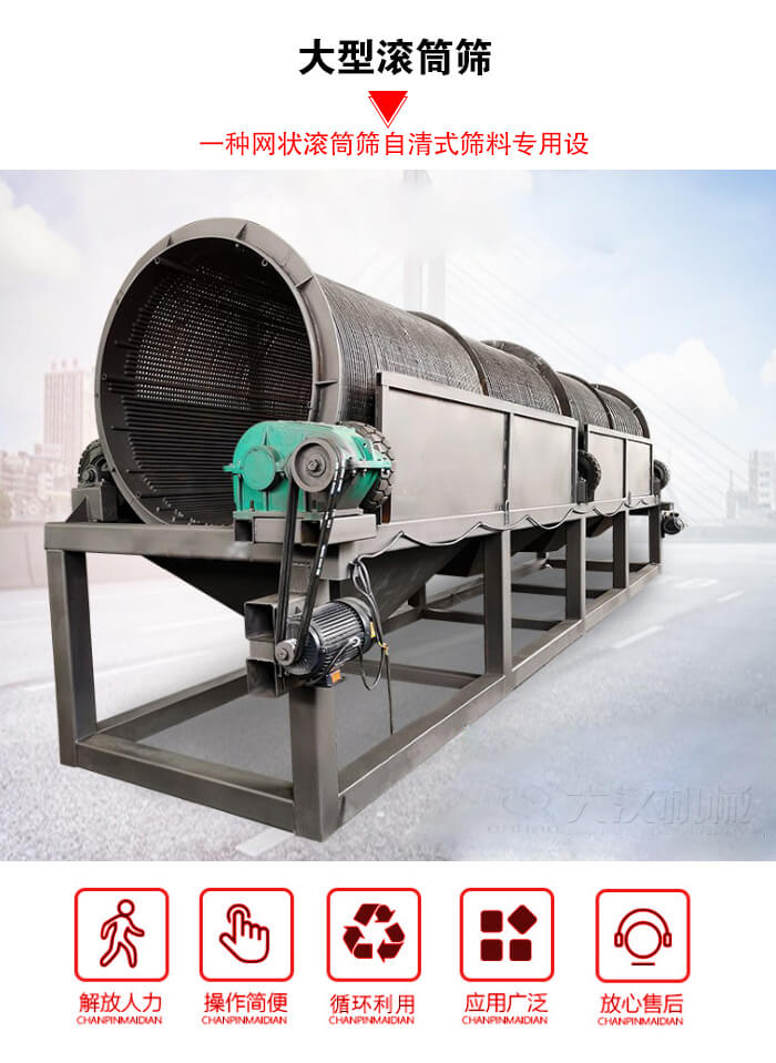 大型滾筒篩,因其獨(dú)特的結(jié)構(gòu)特點(diǎn),完全有效地解決了其他型式篩分設(shè)備所存在的缺點(diǎn),是綜合利用電站的篩型。是繼國(guó)內(nèi)各大公司生產(chǎn)的普通型網(wǎng)狀滾筒篩之后的自清式篩料專用設(shè)備。